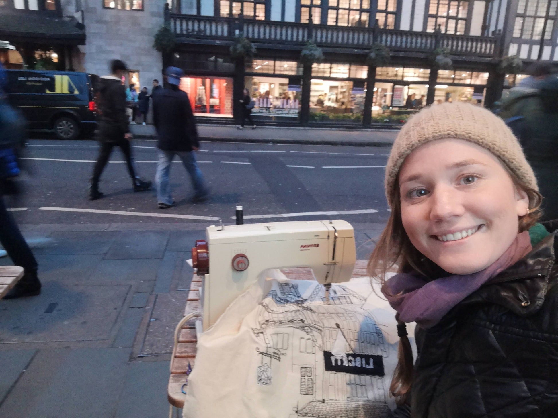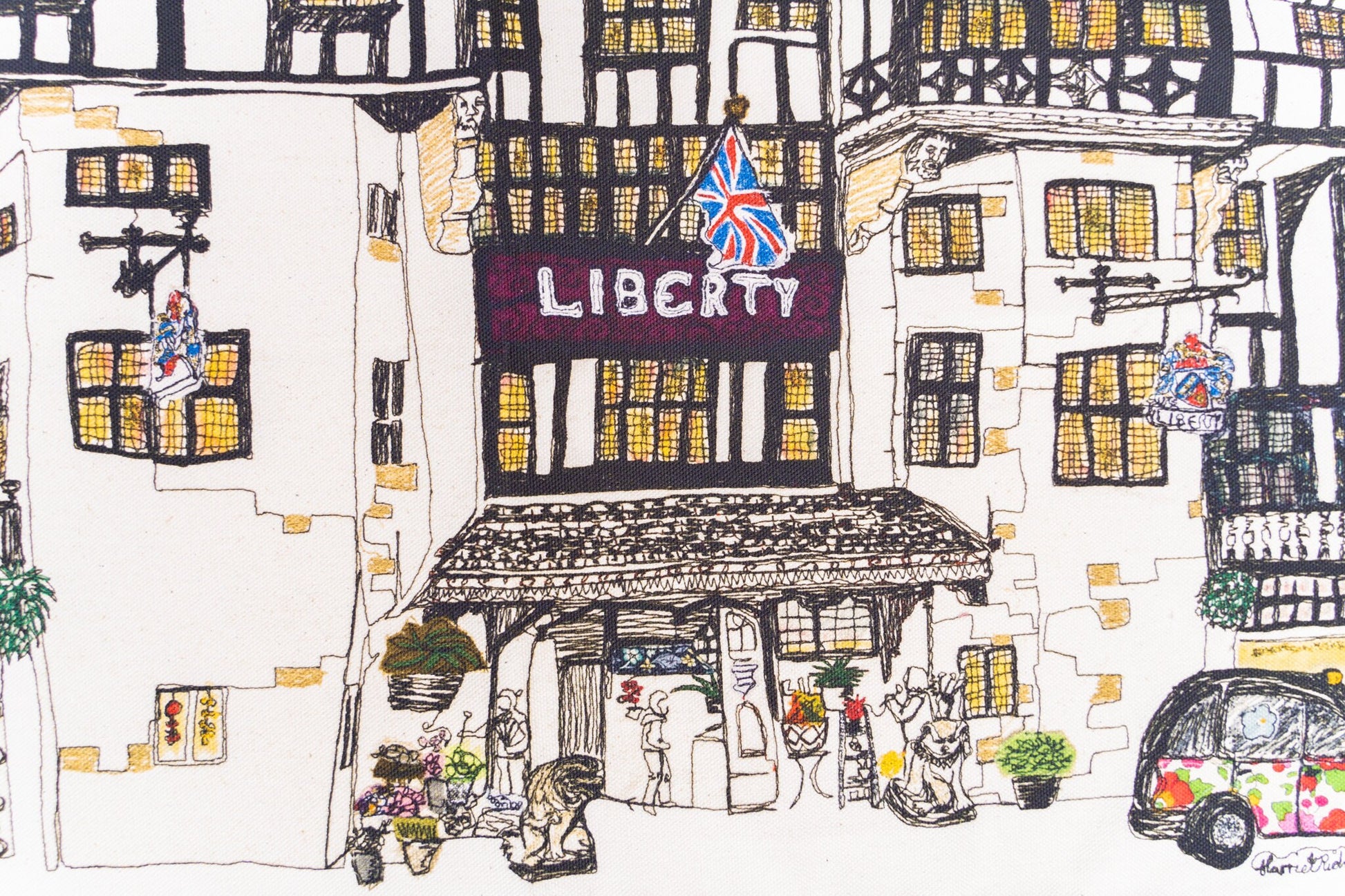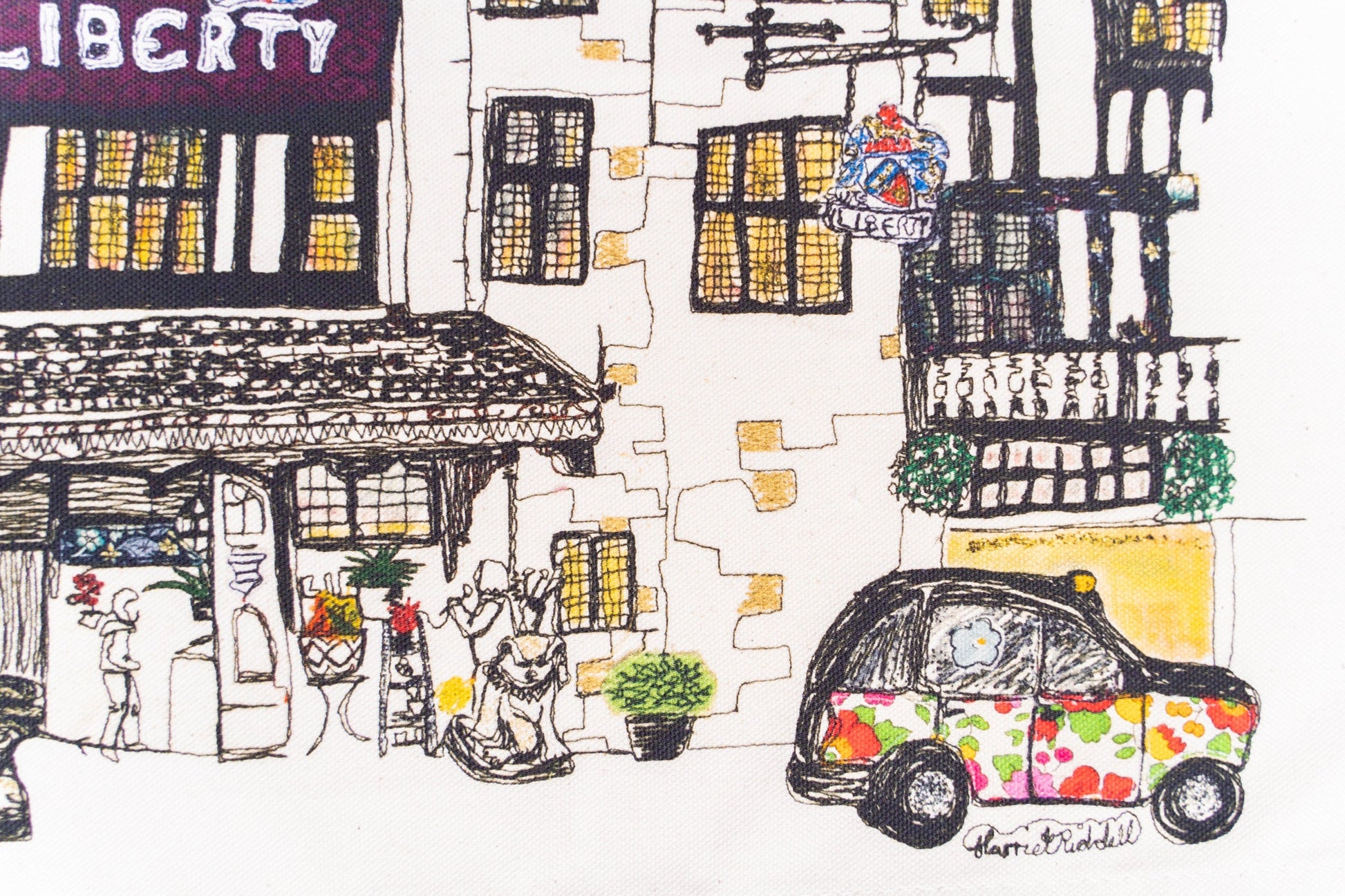 Picture this: Regents Street, the heart of London, buzzing with life. Amidst the throngs of shoppers and the rumble of buses, artist Harriet Riddell sits with her Bernina, stitching the iconic Liberty London building from life. This tea towel isn‘t just a print; it‘s a story woven in thread. It‘s the energy of the city, the conversations with curious onlookers, the sheer joy of creating art in the open air.